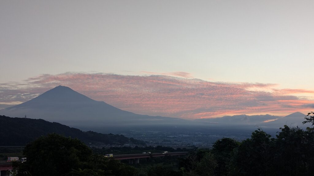 群馬クイーンズJr.は前夜に群馬を出発し、深夜の移動を経て早朝に静岡県へ。仮眠のため立ち寄った富士川SAでは、ちょうど日の出のタイミングで、朝焼けに染まった「赤富士」を見ることができました。全国大会のスタートにふさわしい、縁起の良い風景に、チーム一同気持ちが一層引き締まりました。